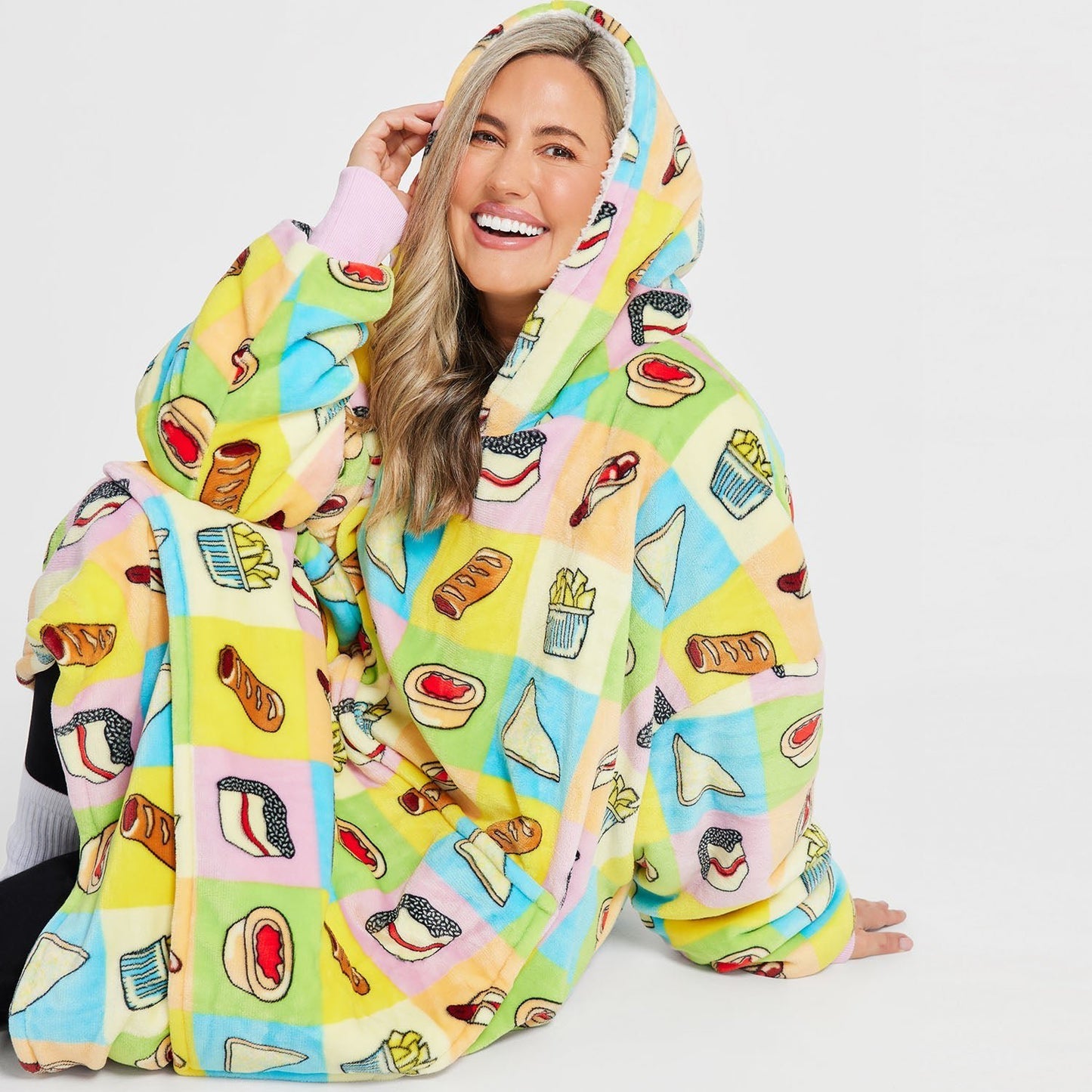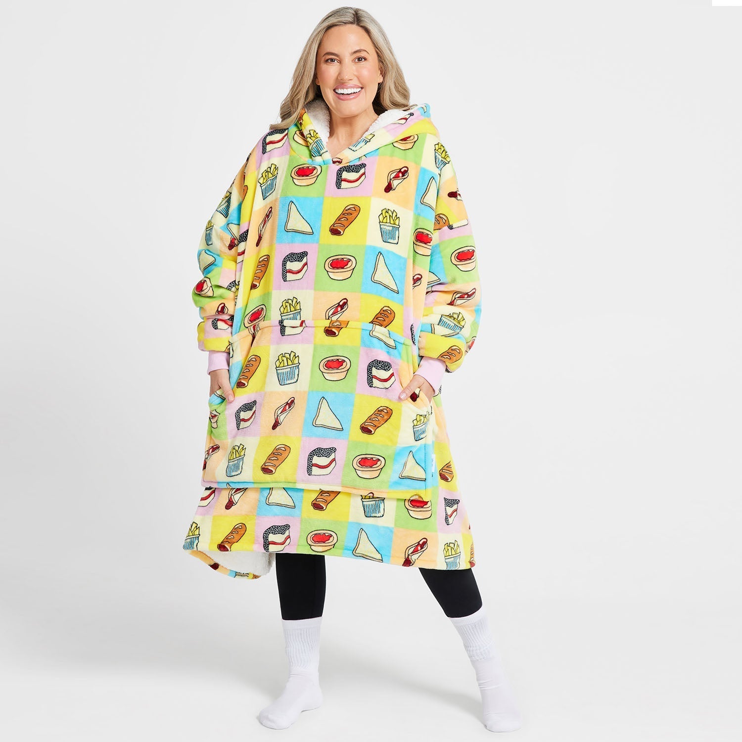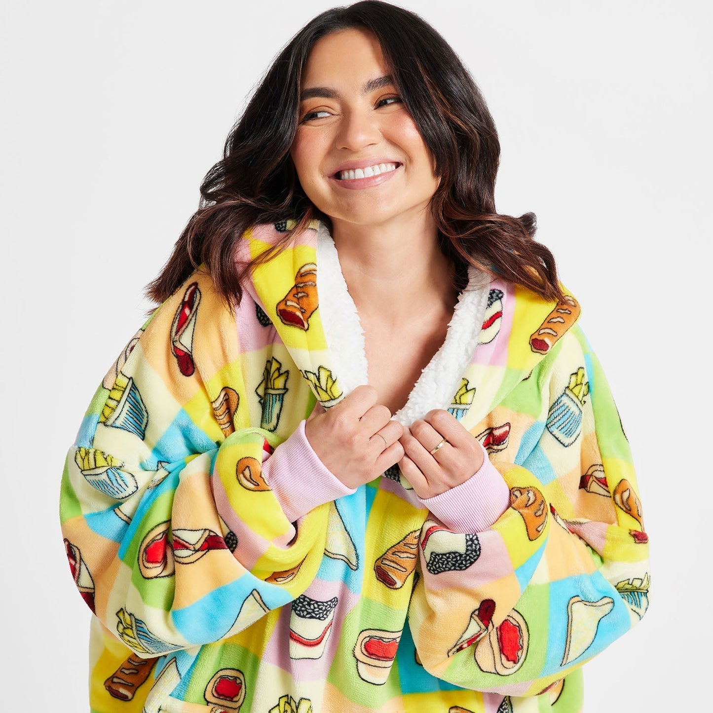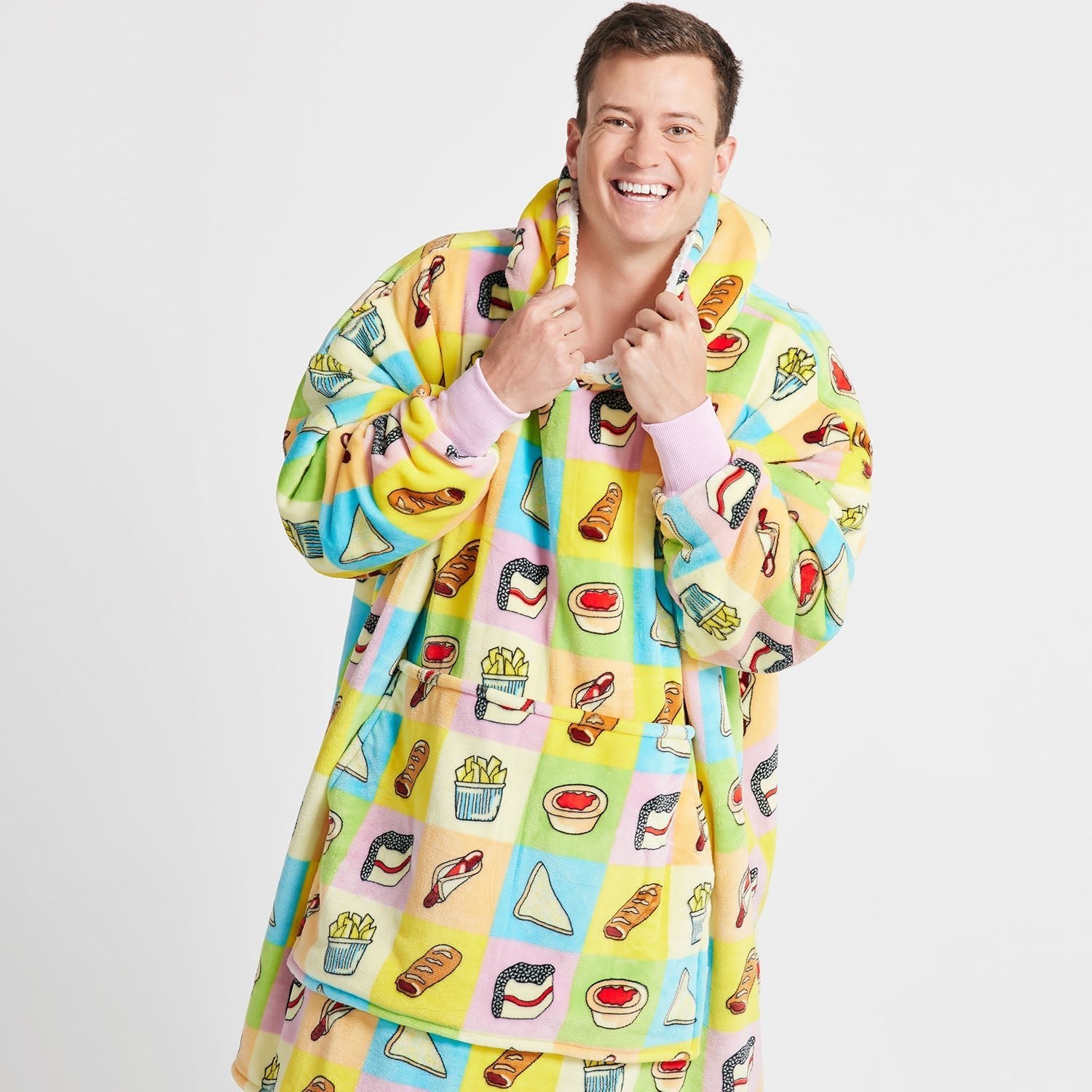 This is such a fun Oodie. The Aussie food theme is awesome for this homesick expat. The softness gives it a great feel, and it’s so wonderfully warm! The fit, though…granted, I didn’t win the height battle, but even with that, it’s SO long! I can’t even use the pockets because I have to lift the Oodie from the front to reach whatever is in there! If nothing else, I wish they could be higher. I expected big, but this is just extra. It did, however, provide a comfy and cozy space for me to snuggle up in while I fought Covid, so I only took off one star for the size. Otherwise, I love it!
