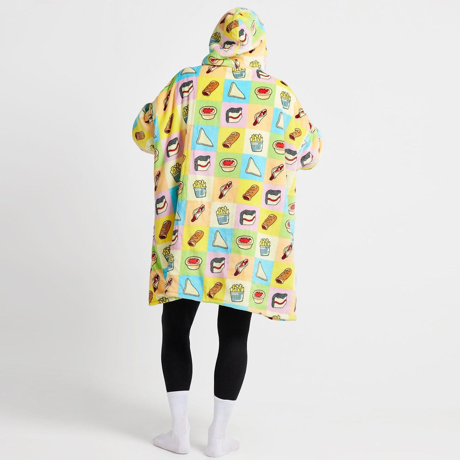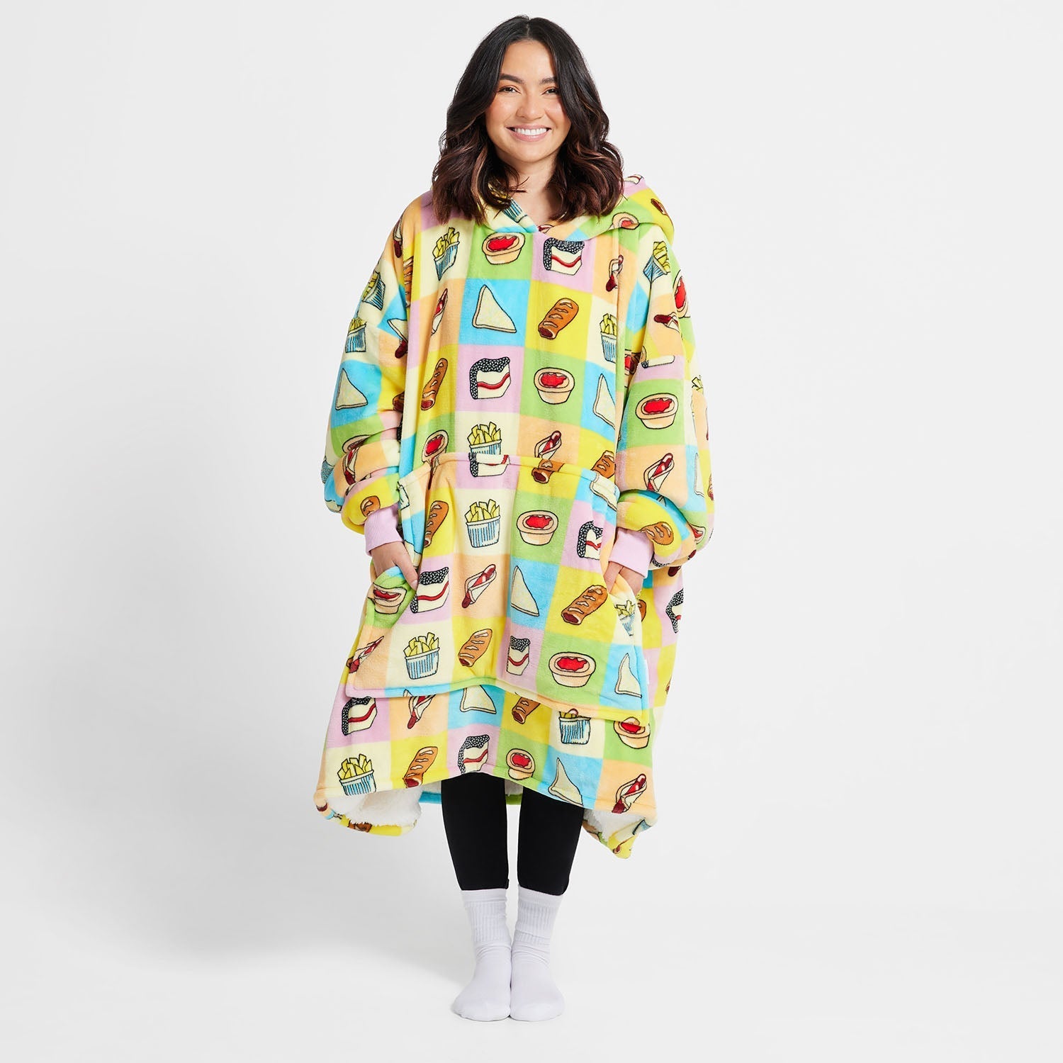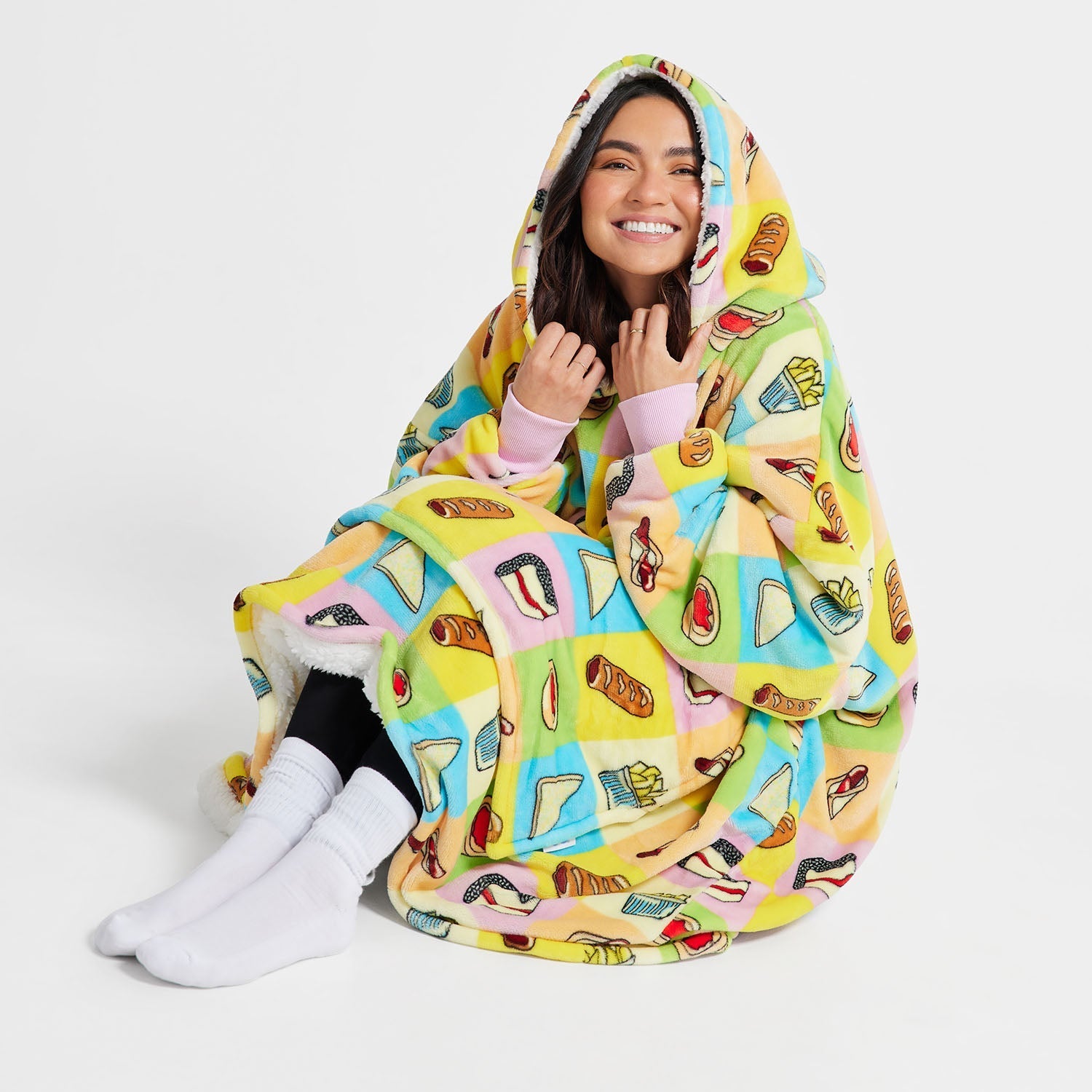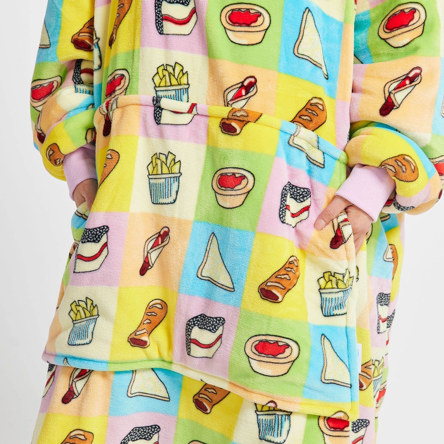This is such a fun Oodie. The Aussie food theme is awesome for this homesick expat. The softness gives it a great feel, and it’s so wonderfully warm! The fit, though…granted, I didn’t win the height battle, but even with that, it’s SO long! I can’t even use the pockets because I have to lift the Oodie from the front to reach whatever is in there! If nothing else, I wish they could be higher. I expected big, but this is just extra. It did, however, provide a comfy and cozy space for me to snuggle up in while I fought Covid, so I only took off one star for the size. Otherwise, I love it!