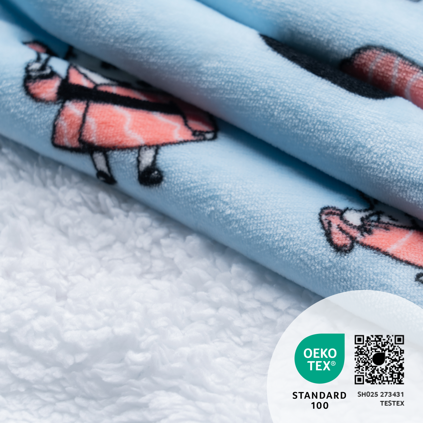 Each Oodie™ Original is made with our signature ToastyTek™ flannel fleece on the outside and ultra-soft sherpa fleece on the inside. Both layers are 100% polyester for warmth, durability, and cuddle factor.