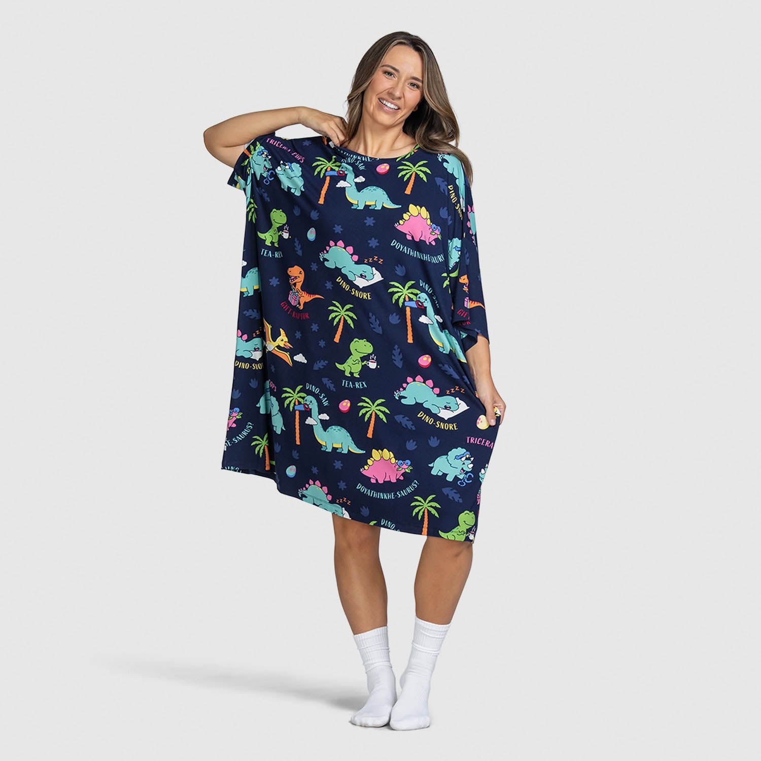 Both styles share the same oversized fit and features (like side pockets), but the fabric is where they differ. Our classic Sleep Tees are made from a lightweight bamboo blend – perfect for hot sleepers, warm climates, or summer nights.