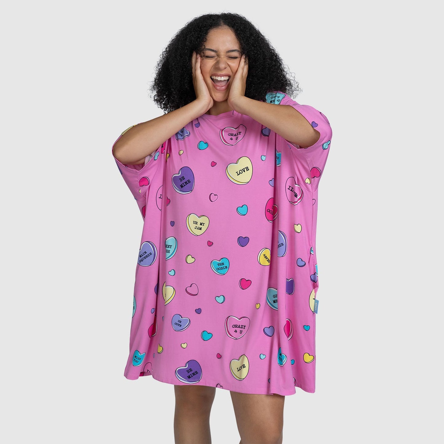 Both styles share the same oversized fit and features (like side pockets), but the fabric is where they differ. Our classic Sleep Tees are made from a lightweight bamboo blend – perfect for hot sleepers, warm climates, or summer nights.