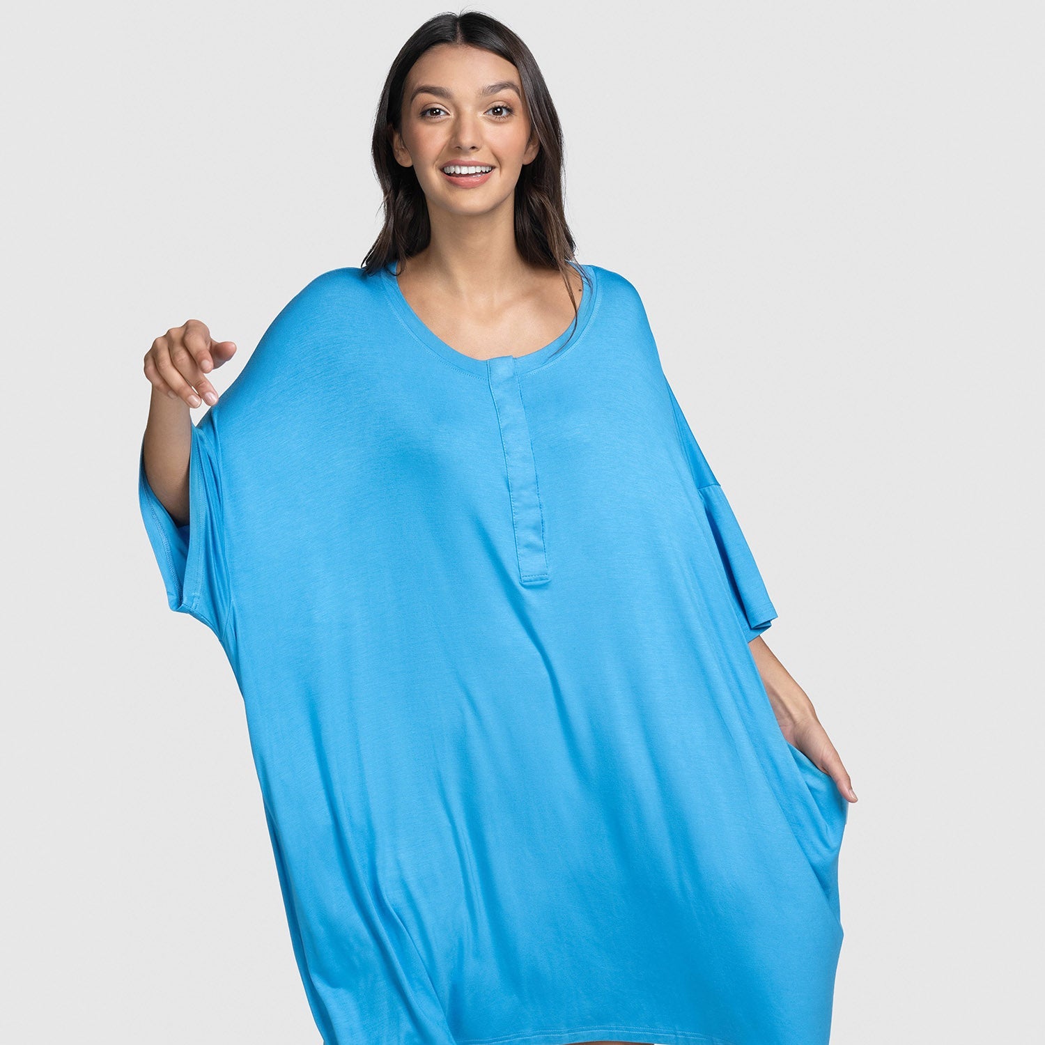 Both styles share the same oversized fit and features (like side pockets), but the fabric is where they differ. Our classic Sleep Tees are made from a lightweight bamboo blend – perfect for hot sleepers, warm climates, or summer nights.