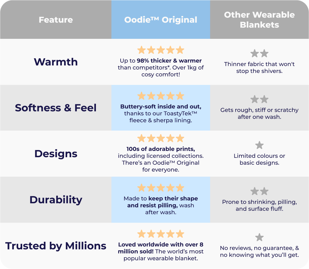 We’ve got a full Care Guide to help you keep your Oodie™ Original feeling soft, fluffy, and looking as good as ever: How To Care For Your Oodie Products