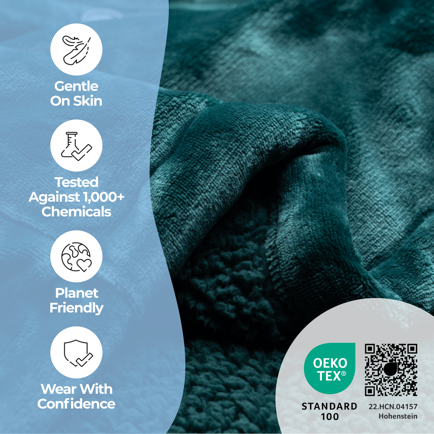 Our dreamy ToastyTek™ fleece on the outside and ultra-warm sherpa fleece on the inside create the softest self-care imaginable. Wrap yourself in two layers of warmth, comfort, and cloud-like softness from morning to night.